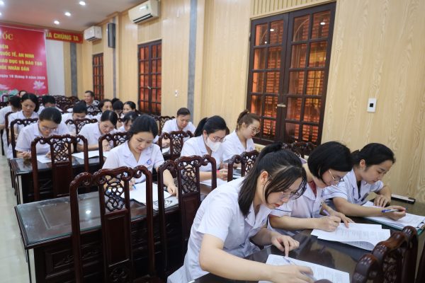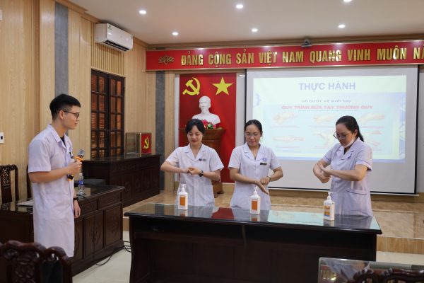 Đặc biệt, để đánh giá hiệu quả tiếp thu kiến thức, toàn thể cán bộ, nhân viên y tế đã tham gia làm bài kiểm tra đầu vào và đầu ra về Thông tư 20/2021/TT-BYT và thực hành quy trình vệ sinh tay thường quy. Đây vừa là hình thức củng cố kiến thức, vừa là cơ sở để bệnh viện nắm bắt mức độ hiểu biết của nhân viên, từ đó tiếp tục có kế hoạch đào tạo, giám sát phù hợp.